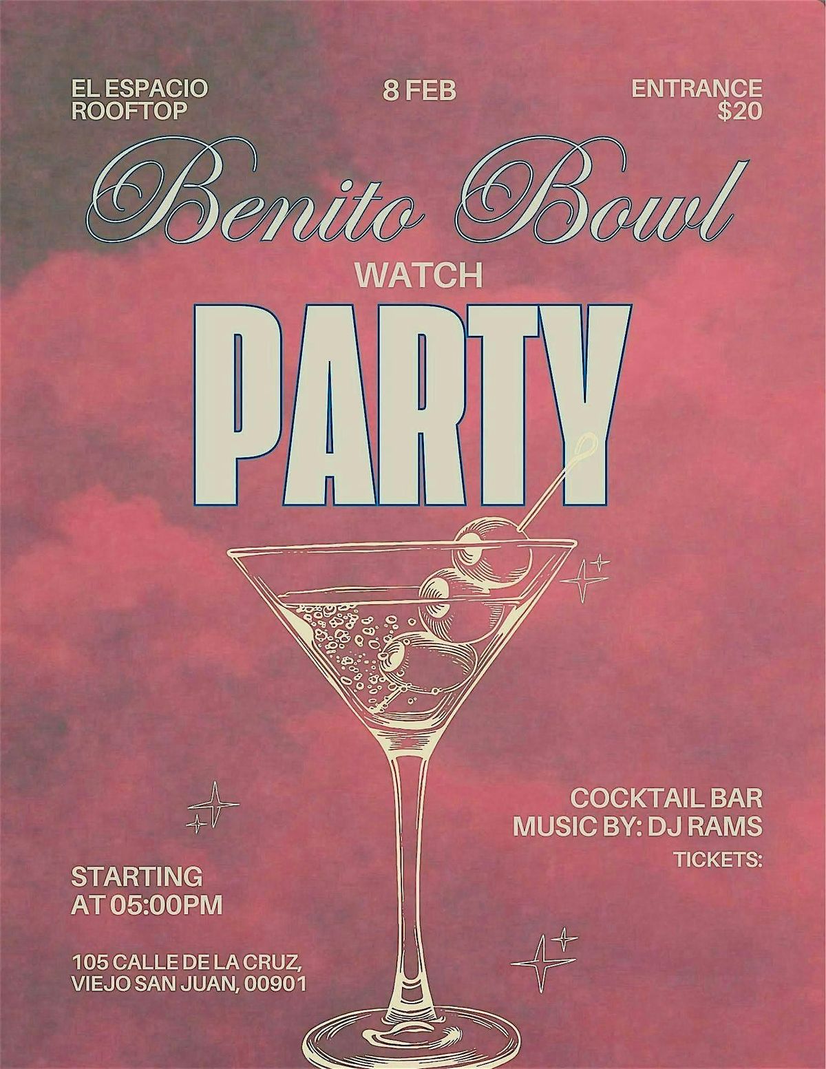 El próximo domingo 8 de febrero súbete al rooftop de El Espacio en el corazón del Viejo San Juan para un juego diferente: más party, más flow y mucho amor boricua. Viendo el atardecer con cocktails en mano, música prendida y una energía que se siente desde que llegas.