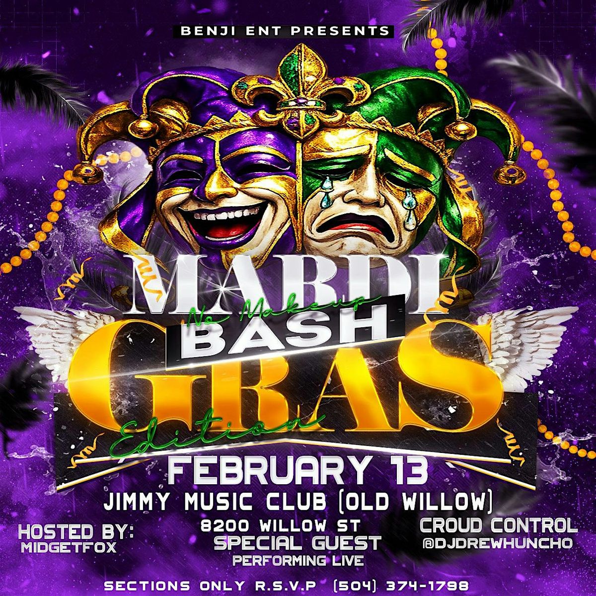 Get ready to party like it's Mardi Gras with BENJI ENT at the NOMAKEUP BASHH - it's gonna be wild!