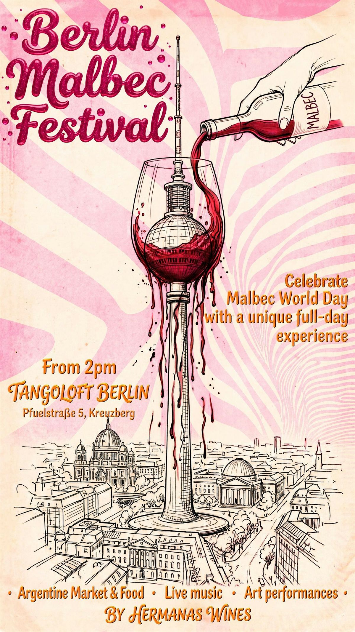 Hermanas brings the Berlin Malbec Festival to Tango Loft — from 2pm on, the space transforms into a vibrant celebration of Argentine culture.