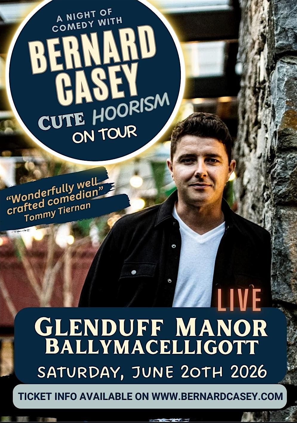 Get ready for a night of big laughs and top-class entertainment as Bernard Casey brings his brand-new stand-up show “Cute Hoorism” to Glenduff Manor, Ballymacelligott on Saturday, June 20th, 2026.
