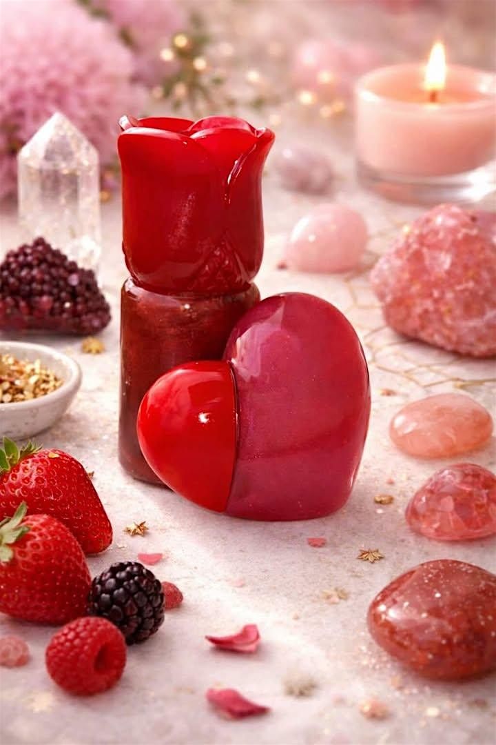 Choose your vessel: a rose-shaped or heart-shaped lip gloss container to match your magic. Then, blend your own gloss while learning the spiritual meanings of berries and how they amplify love, confidence, and attraction. Finally, seal it all with intention.