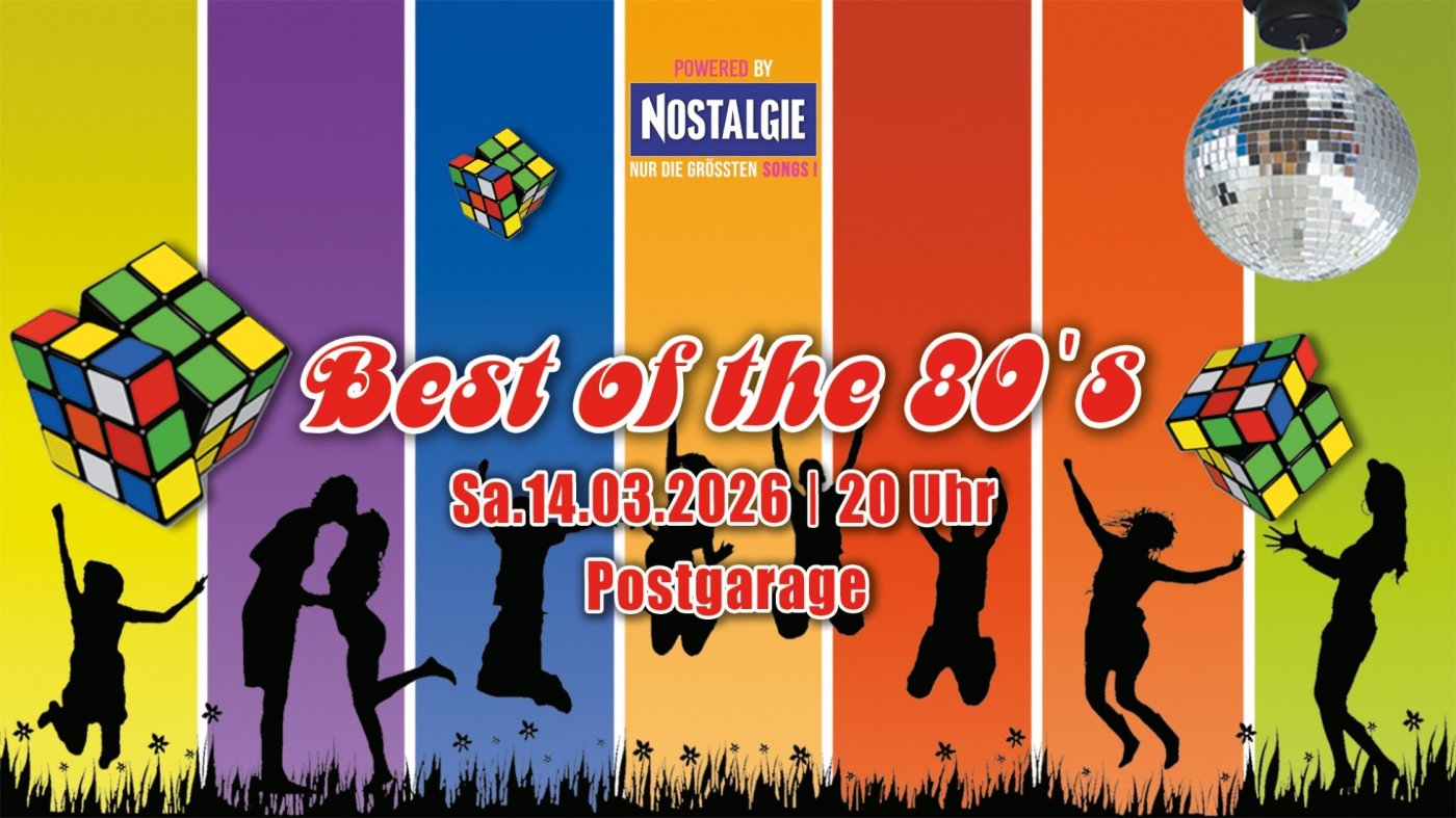 Am Samstag, den 14.03. ist es wieder soweit! Bereits ab 20 Uhr öffnen wir die Pforten zur März-Ausgabe von Best of the 80's, und alle tanz- und partyhungrigen Gäste sind wie immer herzlich eingeladen, mit uns in der Postgarage zu feiern.