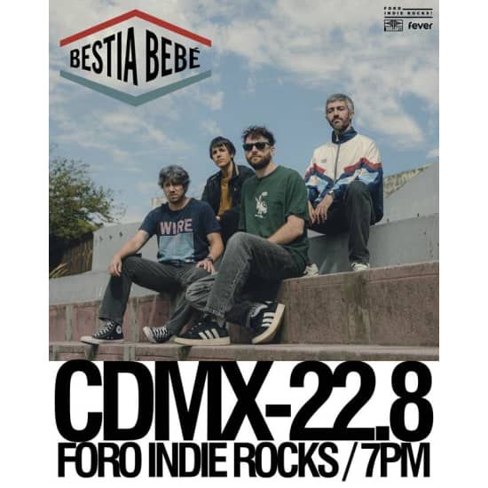 Información 📅 Fecha: Sábado 22 de agosto, 2026. ⏲ Hora: Apertura de puertas 19:00 hrs. 📍 Lugar: Foro Indie Rocks!(Sala B). 👤 Edad: +18 con identificación oficial requerida. ♿ Accesibilidad: Recinto habilitado para personas con movilidad reducida. 📻 Conócelos en Spotify . ❓ Puedes consultar las preguntas frecuentes y sus respuestas aquí . 📱 Tras la compra, es imprescindible que mires las instrucciones en tu mail de confirmación para completar y garantizar tu reserva. Descripción Foro Indie Rocks! Es un espacio multicultural, ubicado en la calle de Zacatecas 39, en la colonia Roma de la Ciudad de México. Principalmente opera como un recinto de conciertos en vivo así como exposiciones culturales, bazares, eventos privados, performances y muchas más actividades que existen dentro de su constante programación de eventos, convirtiéndose en un lugar emblemático para la cultura alternativa de Latinoamérica. ¡No te pierdas su show en el Foro Indie Rocks! 🔥