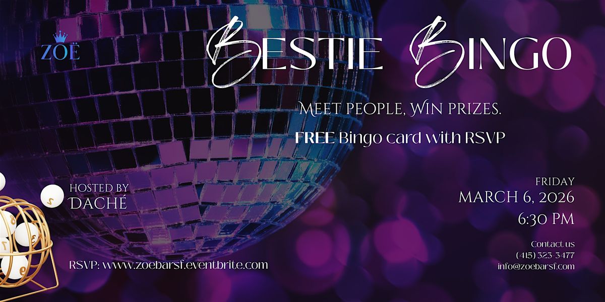 A social bingo night at ZOE — meet new people, win prizes, and dance the night away. Free bingo card with RSVP!About this Event