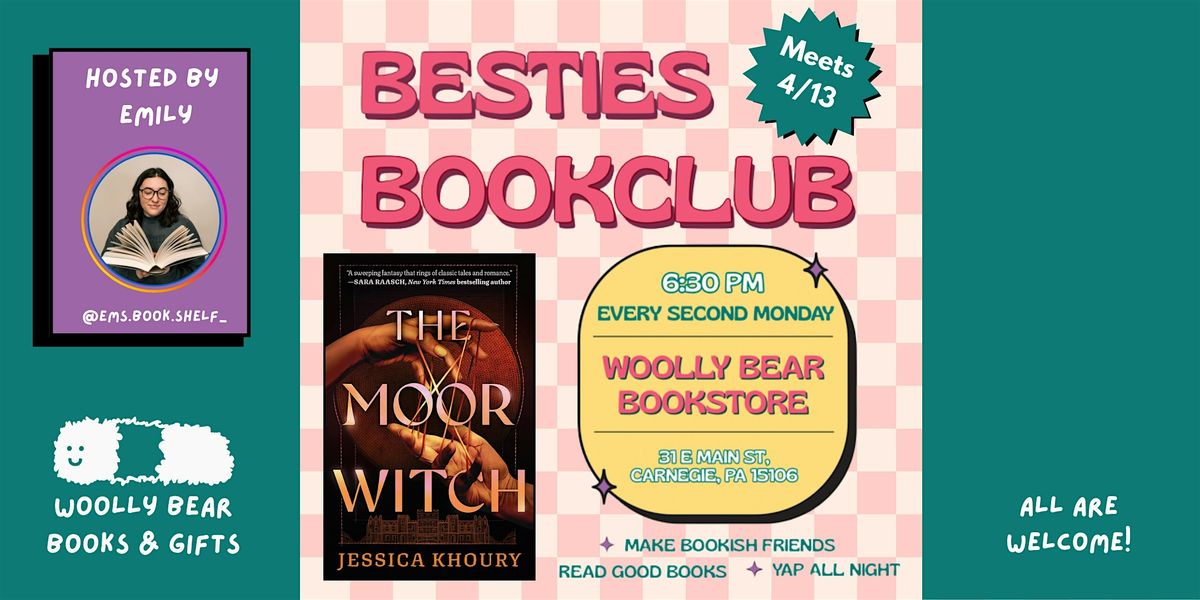 join us for our next meeting on February 9th whether you’ve read the book or not. this month's book is The Moorwitch by Jessica Khoury. grab your copy from the library or 10% off at Woolly Bear Books and Gifts!