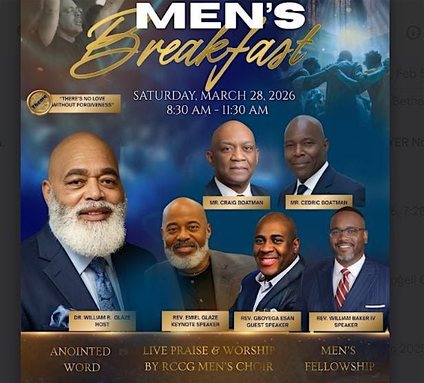 "THERE'S NO LOVE WITHOUT FORGIVENESS" Join us for Breakfast, Fellowship, Music and Anointed Word.