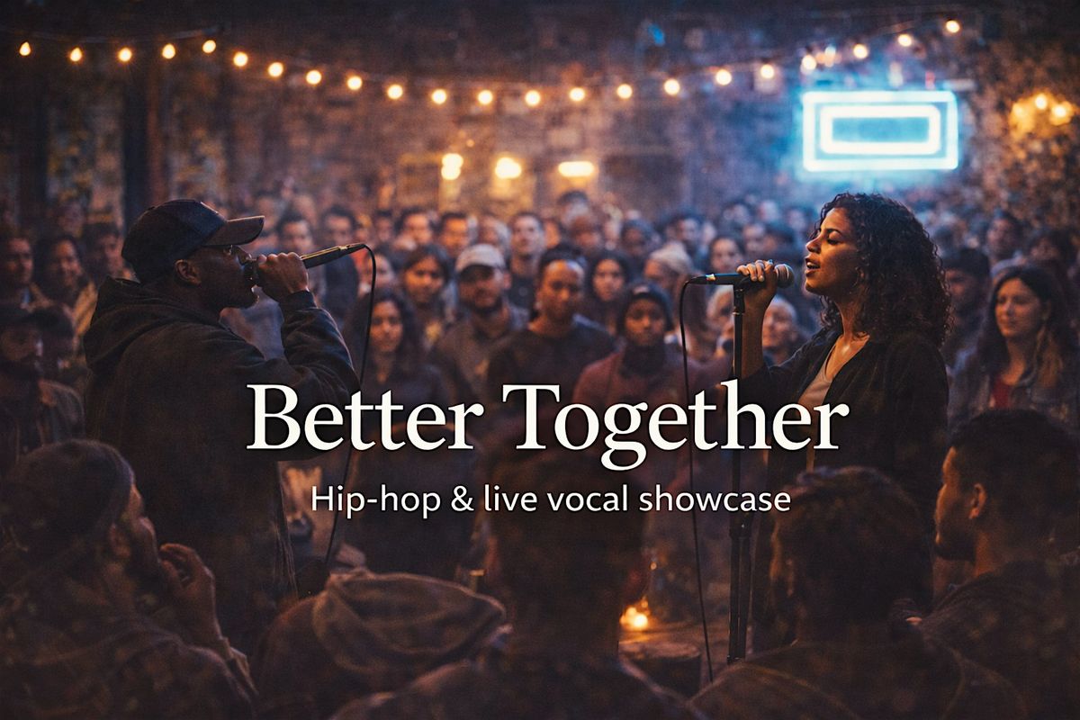 Better Together is a Valentine-adjacent community night built around music, connection, and shared experience. Designed as a small, intentional gathering, the event brings together local rappers, singers, and creatives in a warm, welcoming space where people can actually talk, listen, and connect.