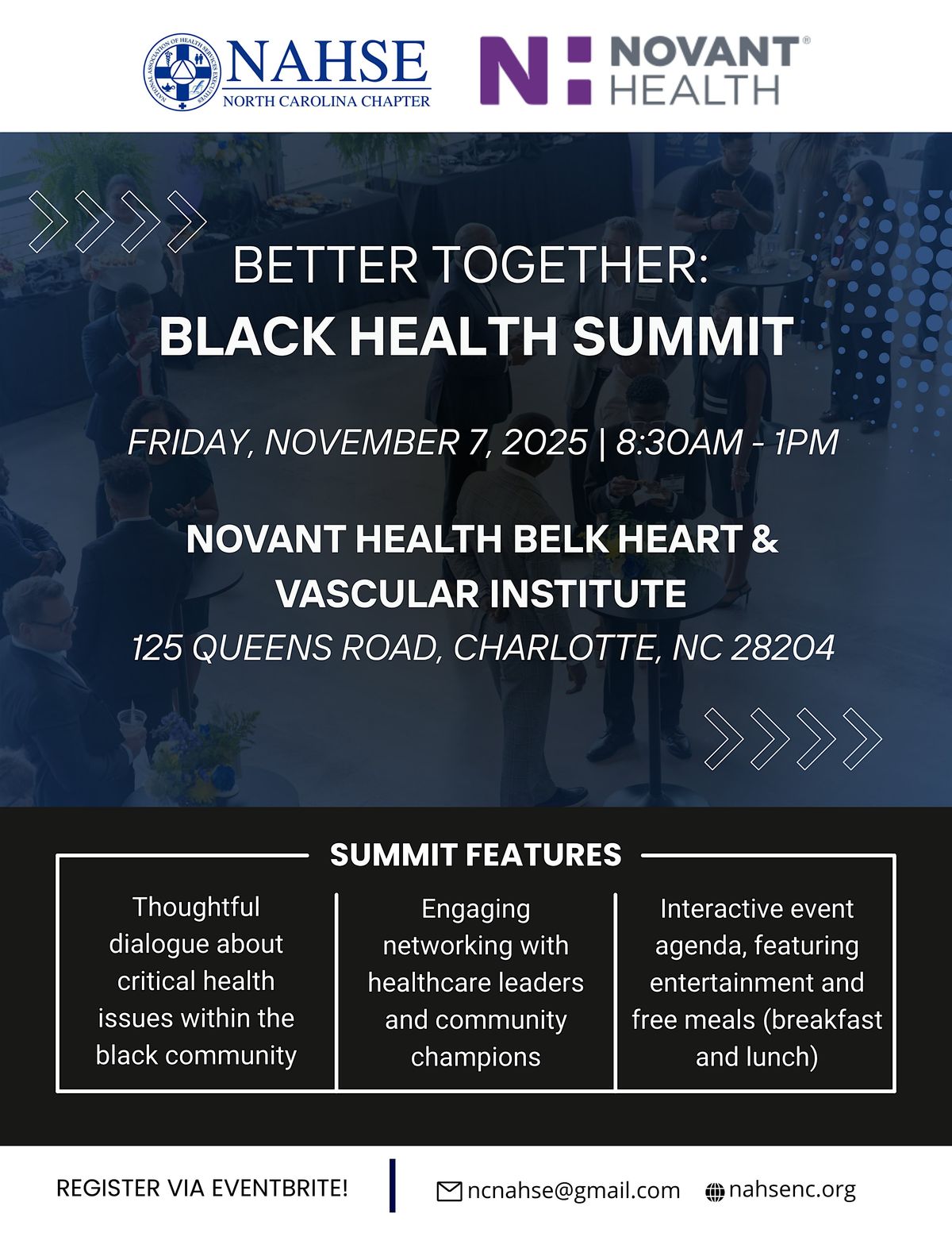 Join the North Carolina Chapter of the National Association of Health Services Executives (NAHSE) and Novant Health for an impactful half-day summit focused on advancing Black health and wellness in our community.