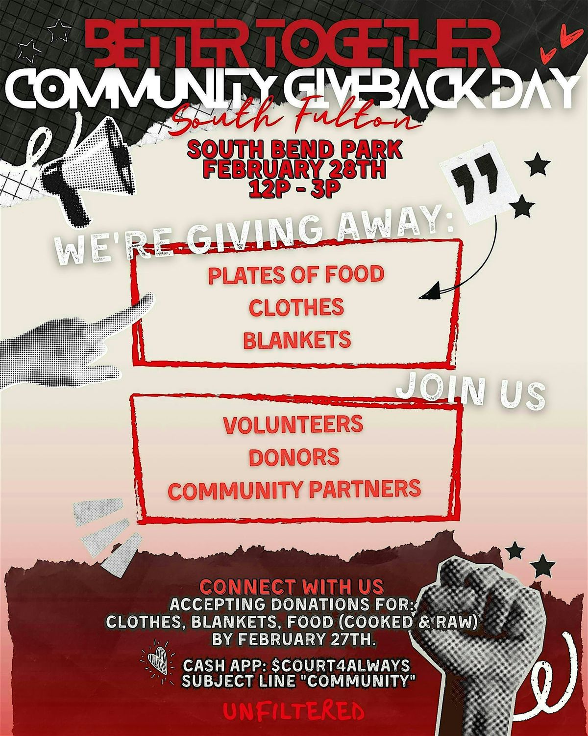 The countdown to Better Together 🤝Community Giveback Day is on! Join us on February 28th from 12pm - 3pm in South Fulton!