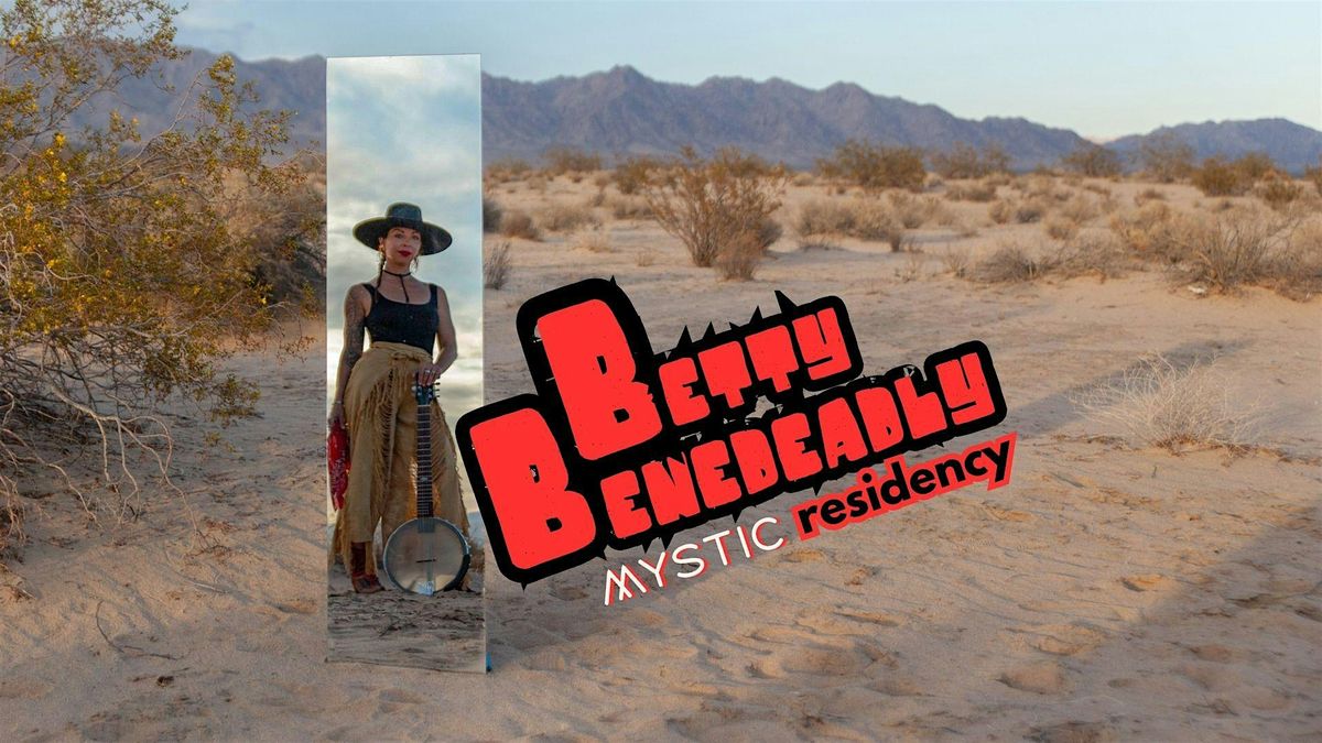 Join Betty Benedeadly as one of The Mystic’s Summer 2026 Featured Performers. Appearing the final Friday of every month, May through August. Madrid-based Benedeadly serves up psychedelic spaghetti western and freak folk with her full band, joined each month by a rotating cast of special guests and opening sets from visiting friends and kindred artists.