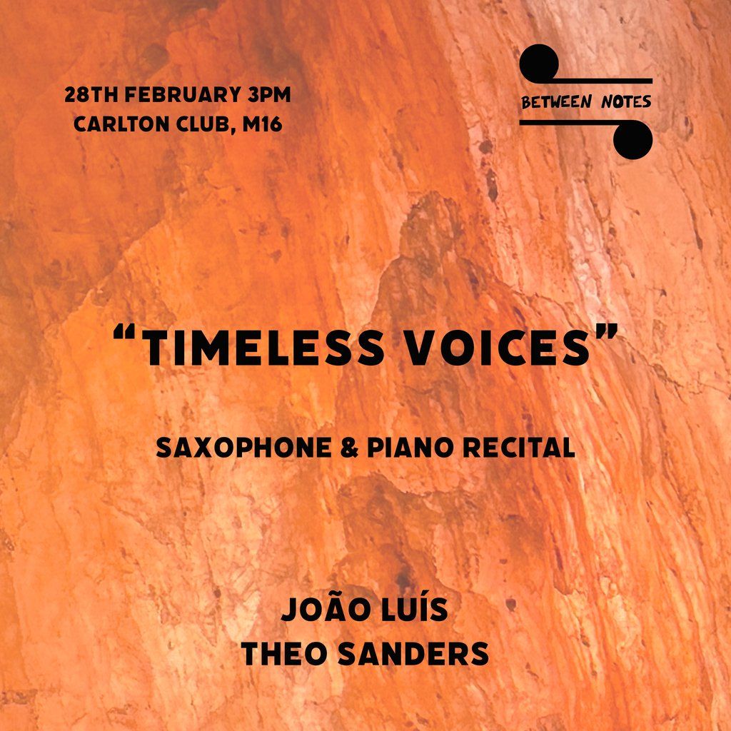 Between Notes presents "Timeless Voices", a Saxophone & Piano recital with João Luís and Theo SandersMusic Genres : Jazz, Classical, Folk