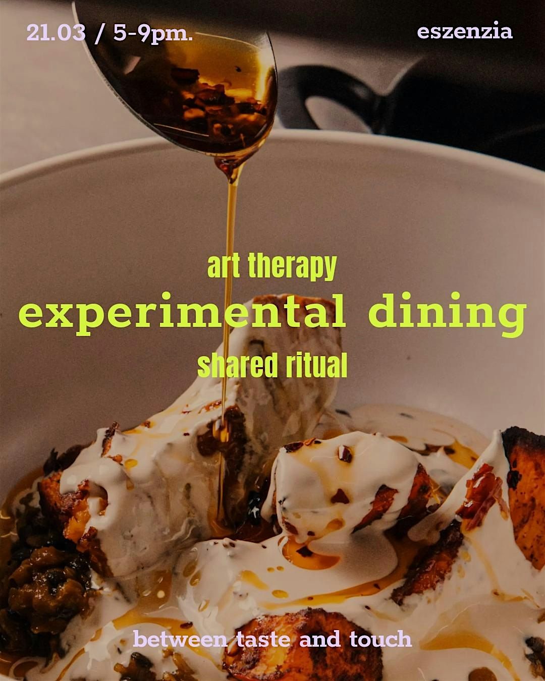 An intimate evening where food, art, and human connection meet. You'll be guided through an experimental dining, art, and meditation experience inspired by Eszenzia's creative menu.