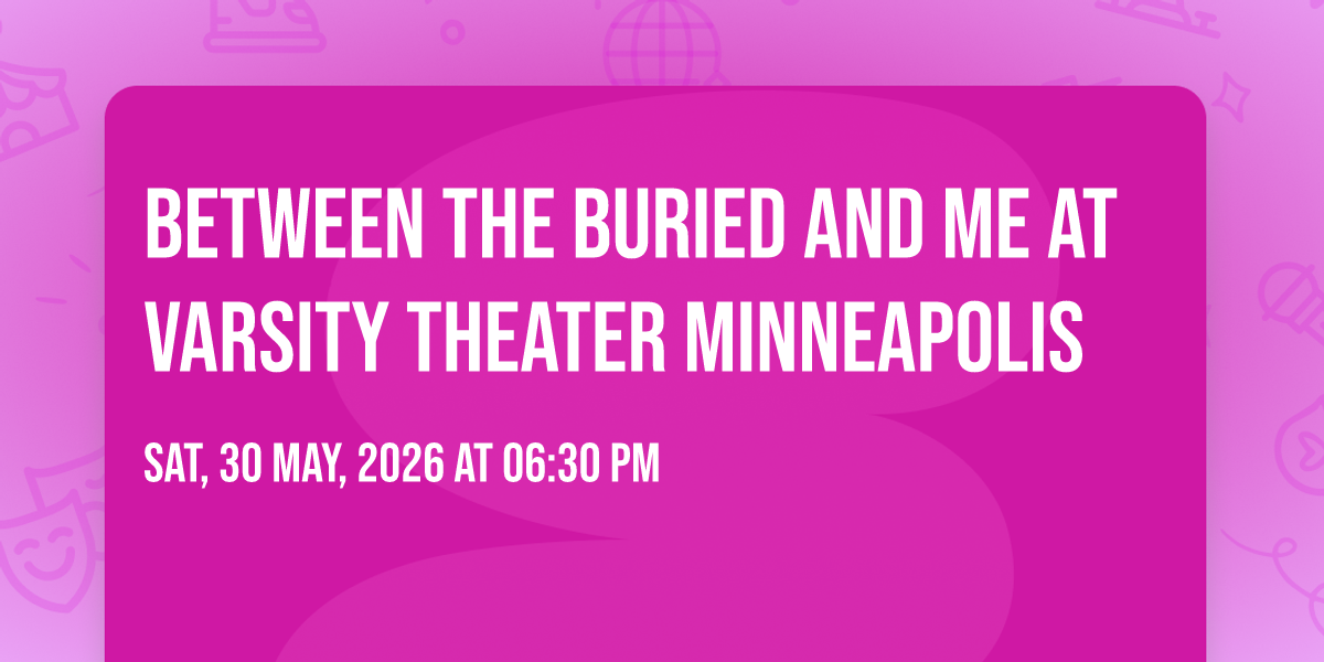 ✨ Discover the extraordinary at Between the Buried and Me at Varsity Theater Minneapolis, where magic meets reality in ways you've never imagined! 🏛️ Set in Varsity Theater Minneapolis nestled in bustling Minneapolis, MN, this event promises to be a landmark occasion. 📅 Taking place on May 30th, 2026 at 06:30 PM, it's going to create an atmosphere where every moment becomes a cherished memory. 🌟 Immerse yourself in an experience crafted with attention to every detail, designed to surprise and delight at every turn. They have worked tirelessly to ensure this event exceeds all expectations, bringing together elements of entertainment, innovation, and pure joy. 🎊 Don't miss your chance to be part of this remarkable journey!