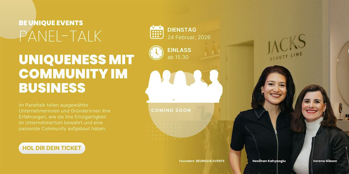In diesem Paneltalk kommen ausgewählte Unternehmerinnen und Gründerinnen zusammen, die aus ihrer eigenen Praxis darüber sprechen, wie sie ihre Einzigartigkeit im Unternehmertum bewahrt haben und gleichzeitig eine Community aufgebaut haben, die wirklich zu ihnen und ihrem Business passt.