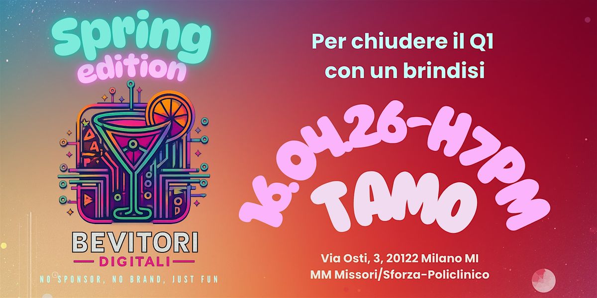 Per chiudere il Q1 con un brindisi, abbiamo organizzato un nuovo appuntamento di Bevitori Digitali, questa volta in centrissimo - tra Missori e Sforza-Policlinico -, così da essere facilmente raggiungibile proprio da tutti!