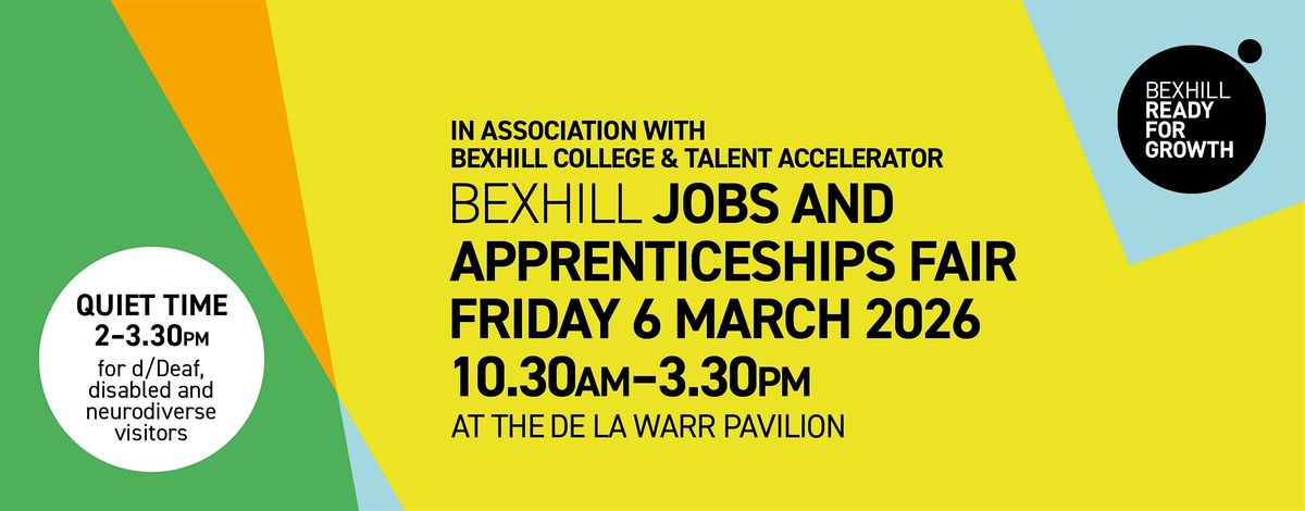 Don’t miss the 10th annual Bexhill Jobs & Apprenticeships Fair, in association with Bexhill College and Talent Accelerator, at the De La Warr Pavilion on Friday 6 March 2026 10.30am – 3.30pm*.