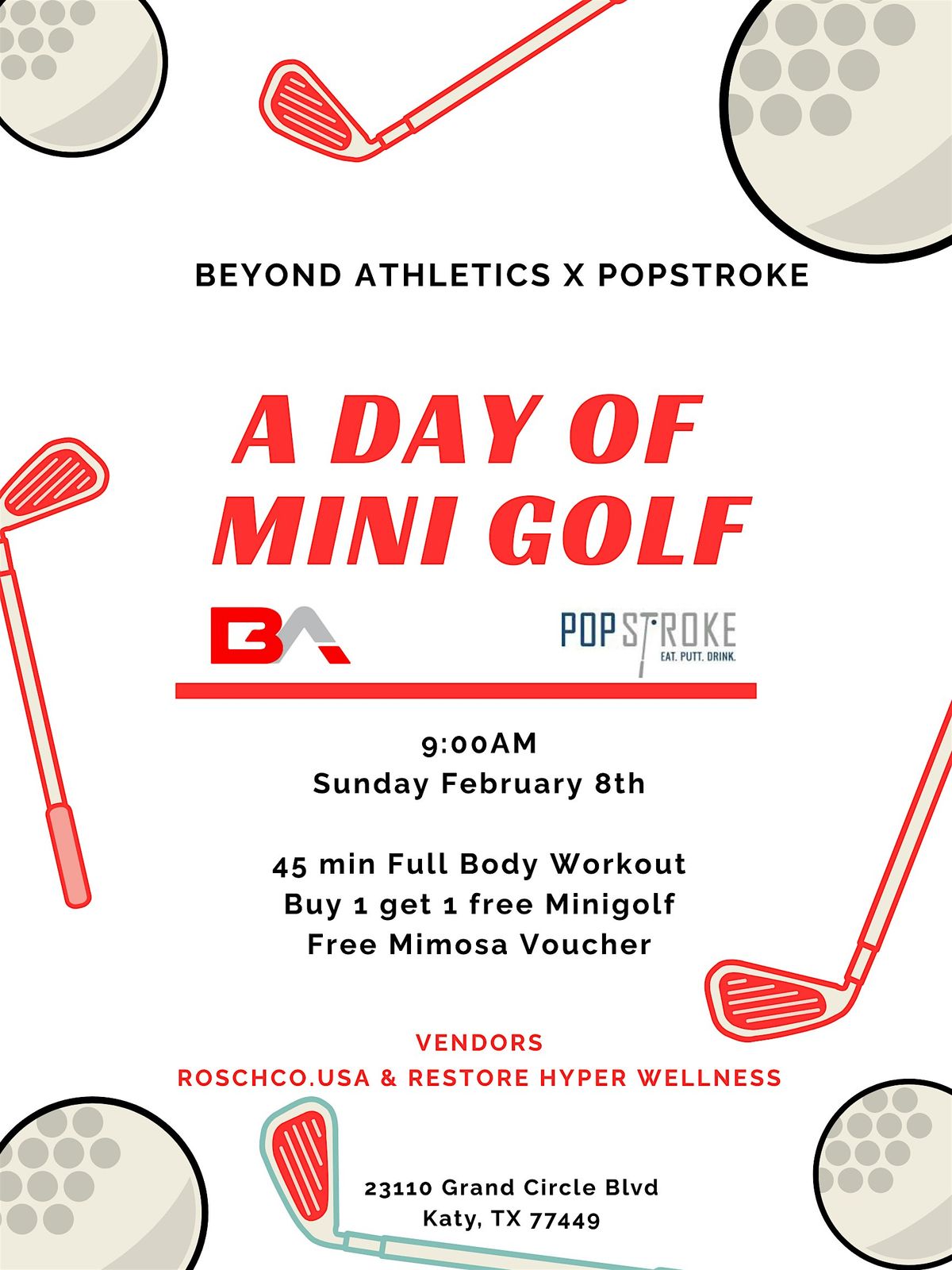 Get ready for a unique fitness-meets-fun experience at PopStroke! Beyond Athletics is teaming up with PopStroke to bring you a 45-minute, high-energy workout hosted right at their premier mini golf facility.