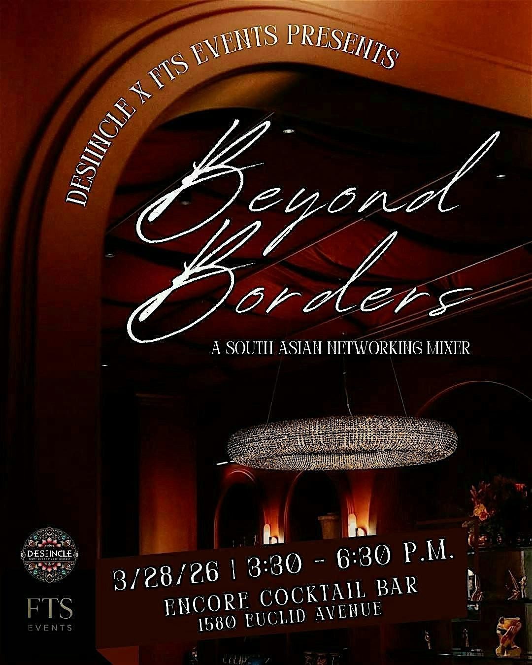 At Desi in CLE and FTS Events, we believe our community deserves spaces that reflect our excellence, creativity, and leadership. Beyond Borders is more than a mixer — it’s a platform for connection, mentorship, and collective growth. Expect a polished atmosphere, thoughtful conversation, and a room filled with people who understand the unique experience of navigating identity and ambition at the same time.