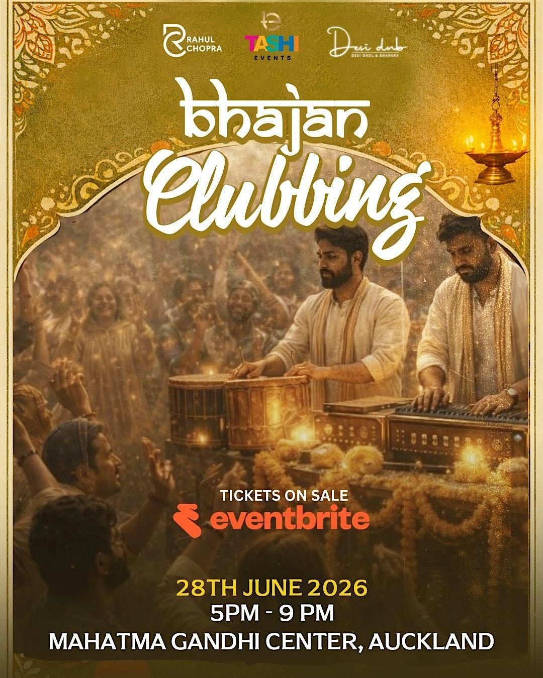 Experience a one-of-a-kind musical journey as Bhajan Clubbing arrives in New Zealand for the very first time. This unique concept blends the soul of traditional bhajans with the energy of a modern clubbing atmosphere, creating a powerful fusion of devotion and rhythm.