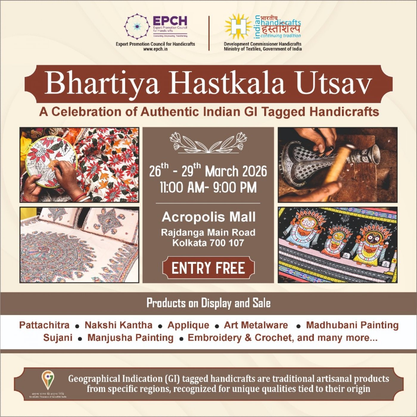 Step into a vibrant celebration of India’s timeless craftsmanship at the Bhartiya Hastkala Utsav 2026, a one-of-a-kind exhibition-cum-sale dedicated to authentic Geographical Indication (GI)-tagged handicrafts.