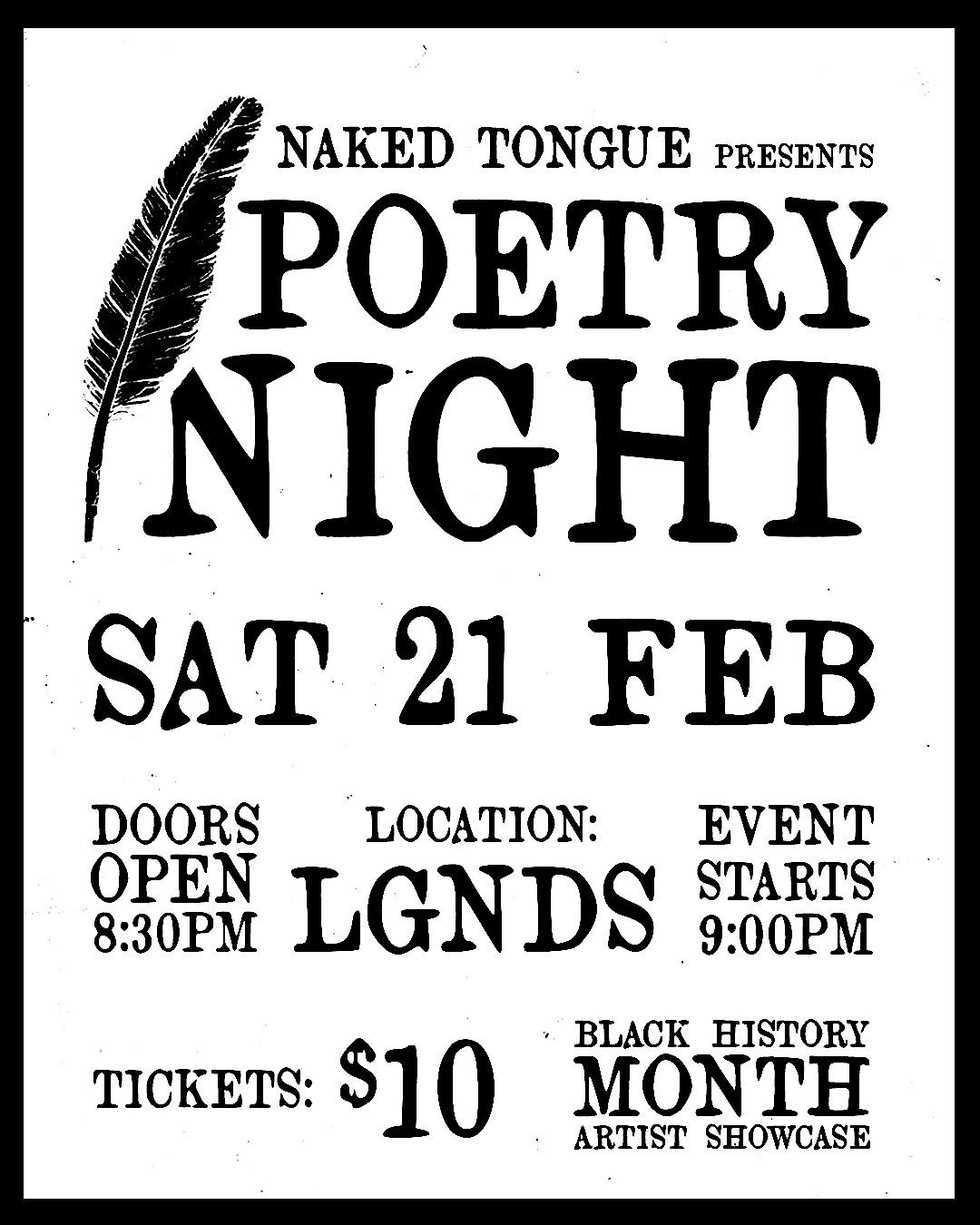 Naked Tongue Poetry Night is a space for truth-tellers, soul-speakers, and verse-slingers to bare it all. No filters, no fluff, just pure wordplay, emotion, and energy. Whether you’re spilling your heart or sipping something strong, come vibe with a crowd that knows poetry is power.
