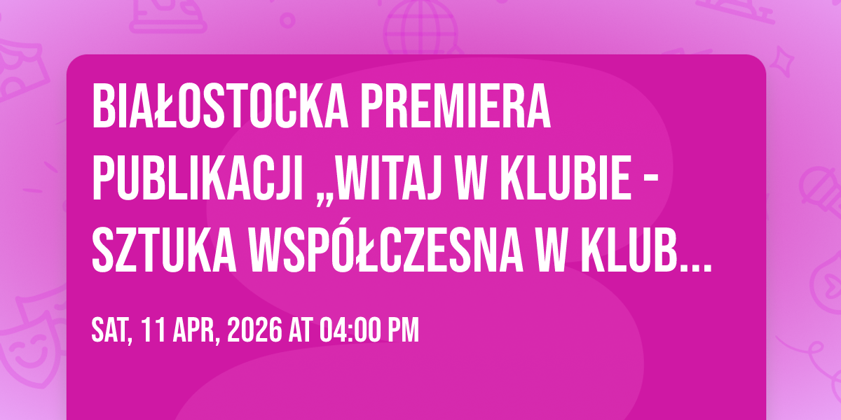 Zapraszamy na białostocką premierę publikacji „Witaj w klubie - sztuka współczesna w klubach osiedlowych”. To ostatnie wydarzenie z cyklu 𝒲𝒾𝓉𝒶𝒿 𝓌 𝓀𝓁𝓊𝒷𝒾𝑒 2. 💘