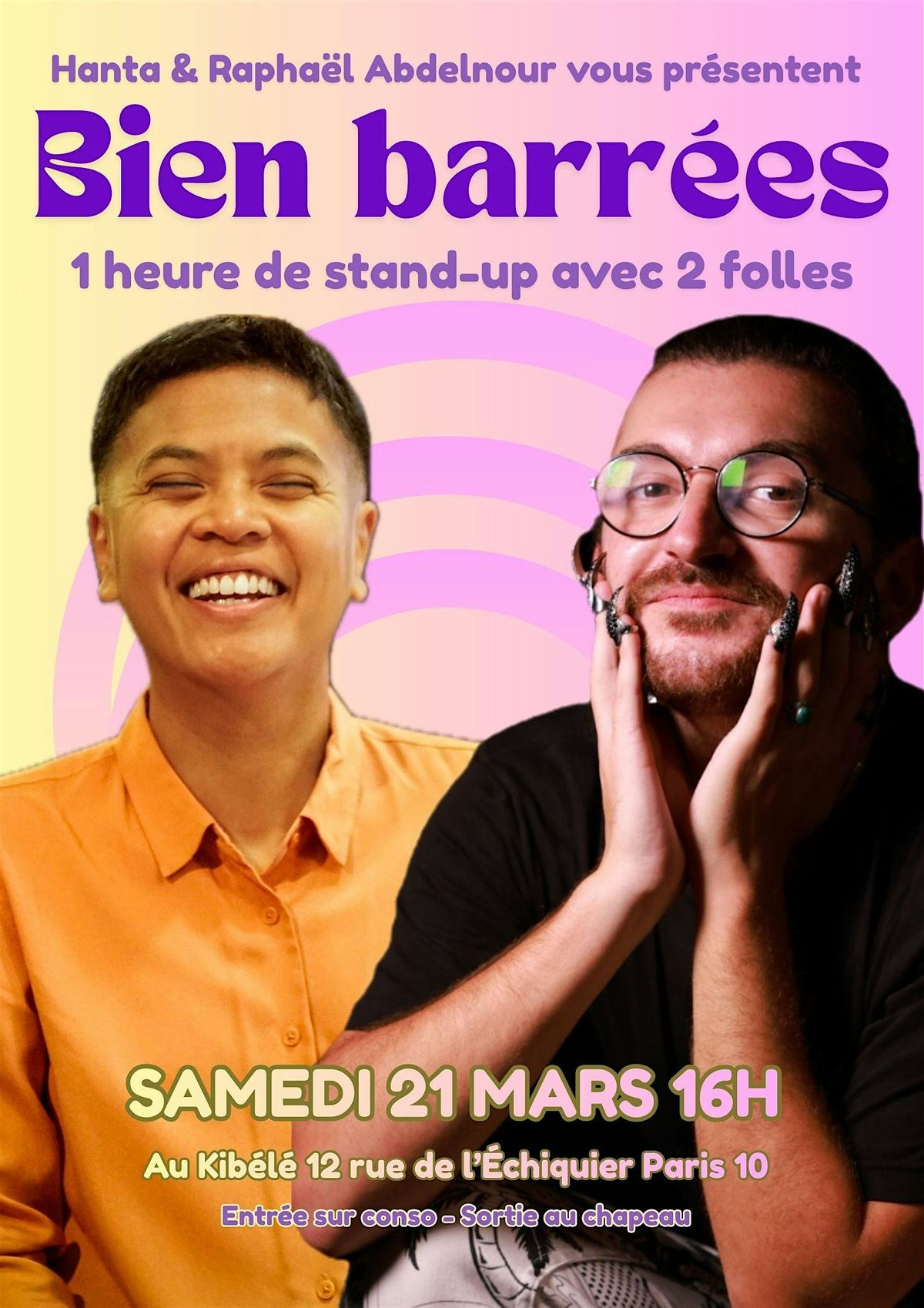 Une heure de standup avec Hanta & Raphaël Abdelnour, deux folles promises à une longue carrière ! Entrée sur conso, sortie au chapeau.