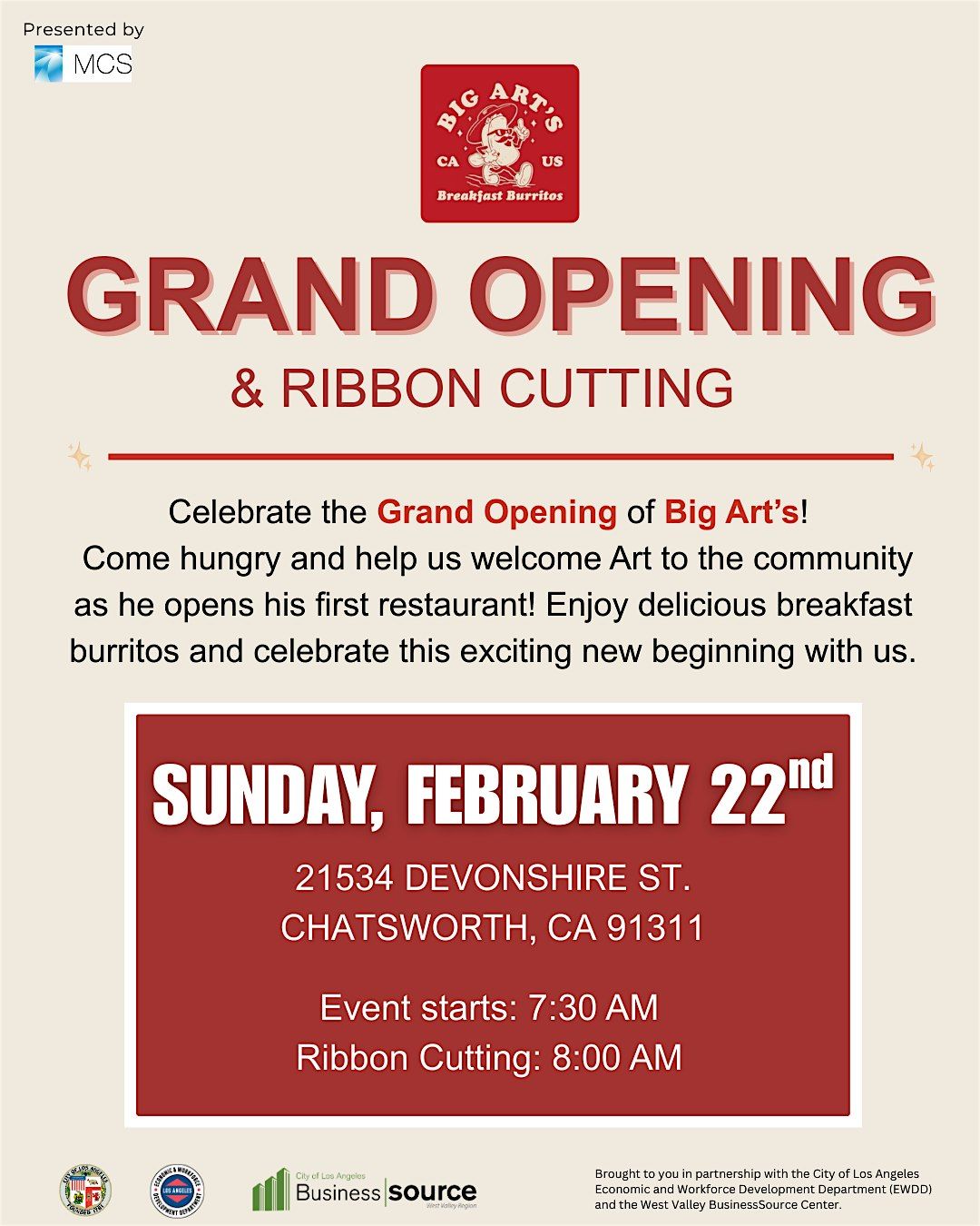 Join us this Sunday as Art officially opens the doors to his very first restaurant. Let’s show up, show support, and give Big Art’s Tacos a warm community welcome. Bring your friends, bring your family — and definitely come hungry!