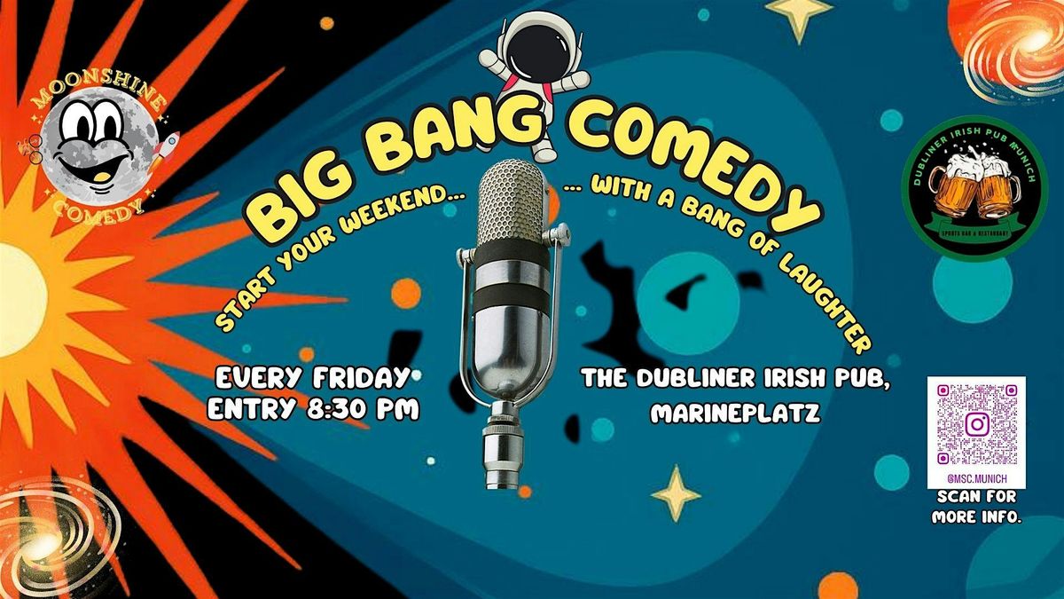 Big Bang Comedy brings Munich’s Friday nights to life with a stacked lineup of hilarious comedians delivering sharp jokes, wild stories, and unforgettable punchlines.