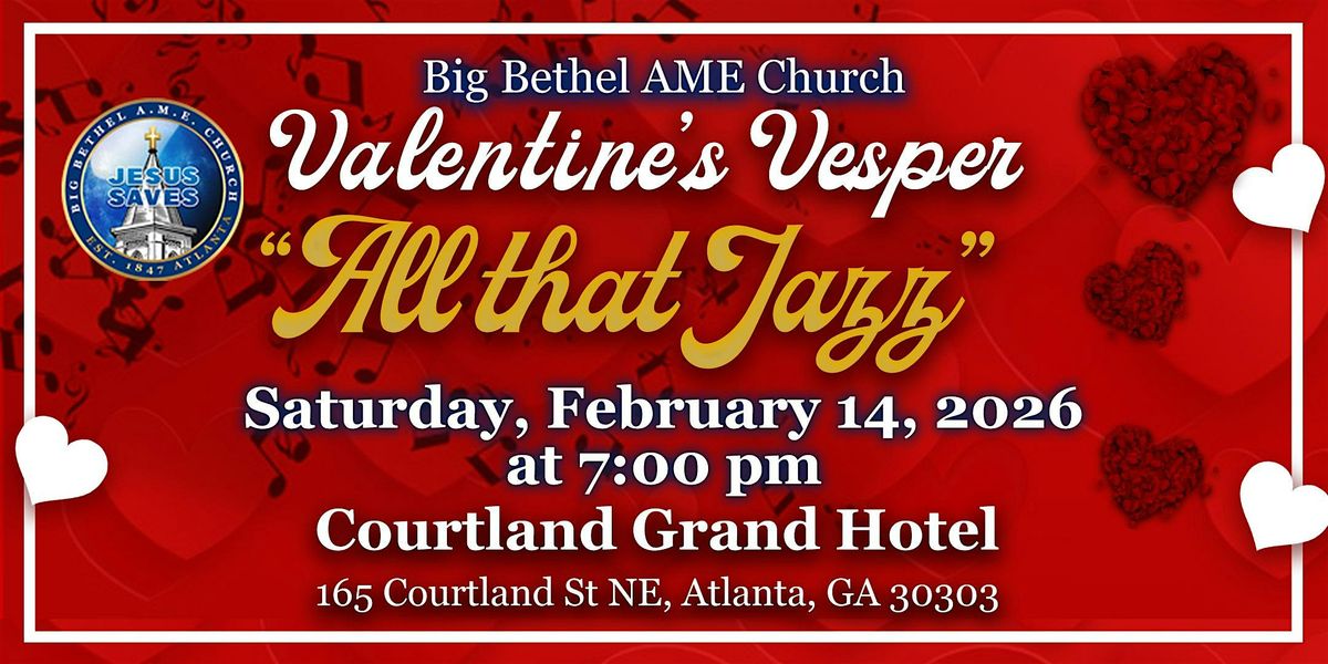 Join us in person for a cozy and soulful evening at Big Bethel AME Church! Celebrate Valentine's with the smooth vibes of "All That Jazz". It's the perfect chance to relax, enjoy great music, and share the love. Don't miss out on this unforgettable night full of jazz tunes and warm community spirit. See you there!