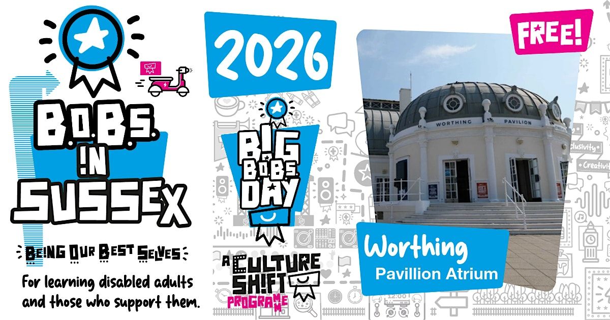Join us at our BIG BOBS DAY in Worthing: A FREE opportunity to meet new people, visit new places and build confidence all through a range of activities which focus on our MOOD, getting our bodies MOVING and MAKING something creative!