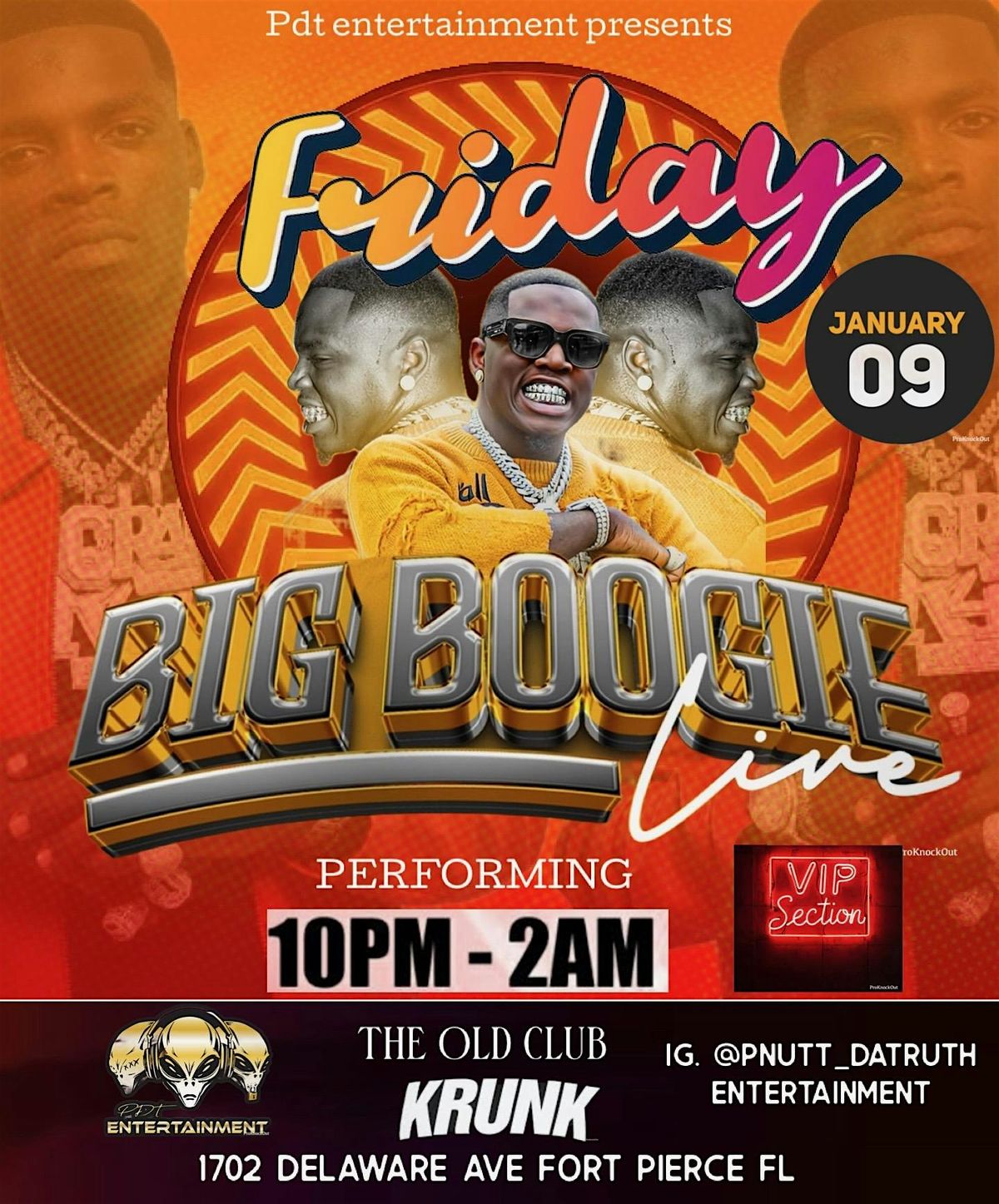 We littttt. Come turn up with us for a night filled with fun and music ..... PDT Entertainment doesn't again where the vibes are high and the dance floor is waiting for you and your friends ! Club Crunk, Big Boogie is the place to be. Bring your friends, come dressed to impress , and get ready to Bop all night long. Yall know the vibes , the old club crunk is about to be KRUNK!
