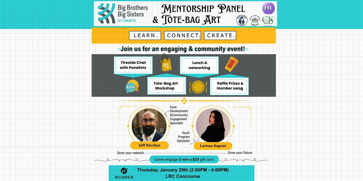 Step into a space designed for students, by students, where mentorship meets hands-on experience and meaningful connection. The Big Brother Big Sister Toronto: Mentorship in Action Panel isnβt just a talk, itβs an interactive journey that lets you explore, engage, and take home tools to grow personally and professionally.