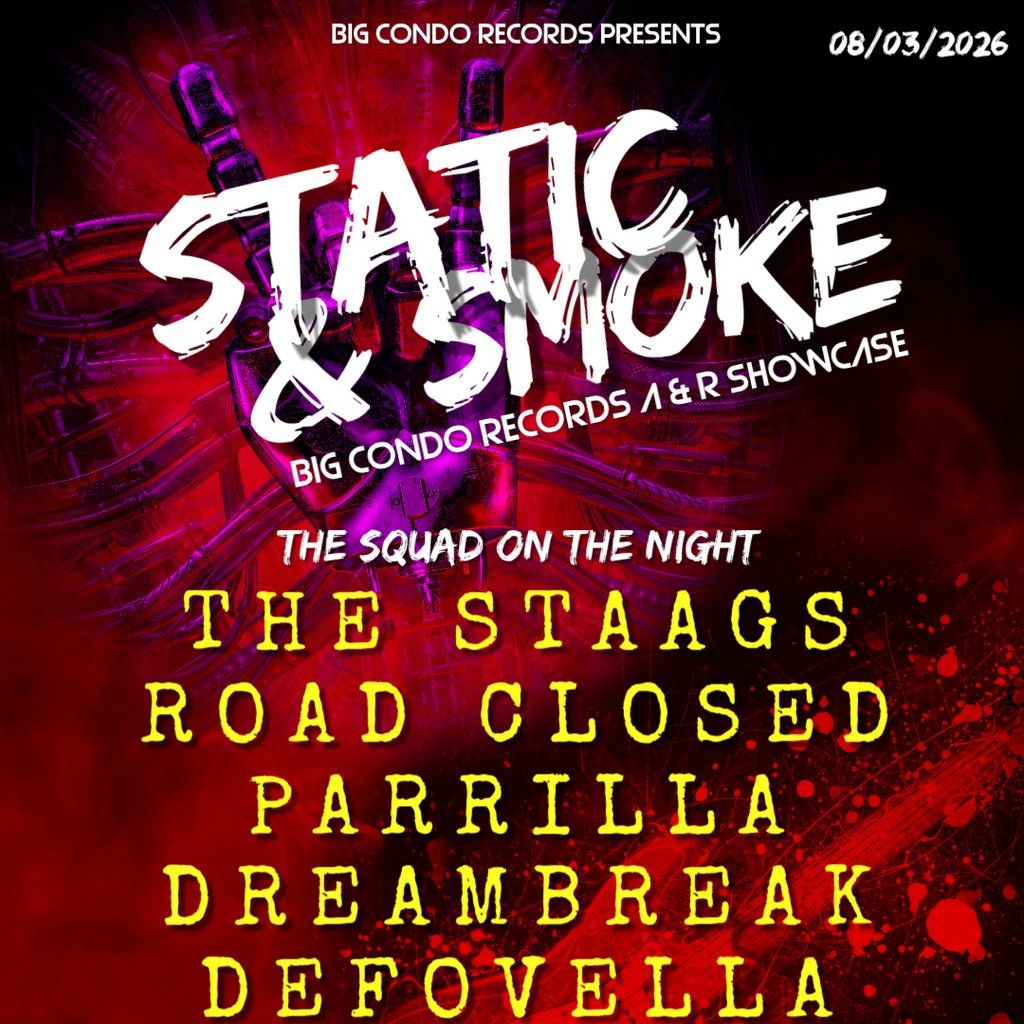 Big Condo Records Presents Static & Smoke with The Staags, Road Closed, Parrilla, Dreambreak, Defovella and a special guest from the unknown realm..Music Genres : Rock, Indie