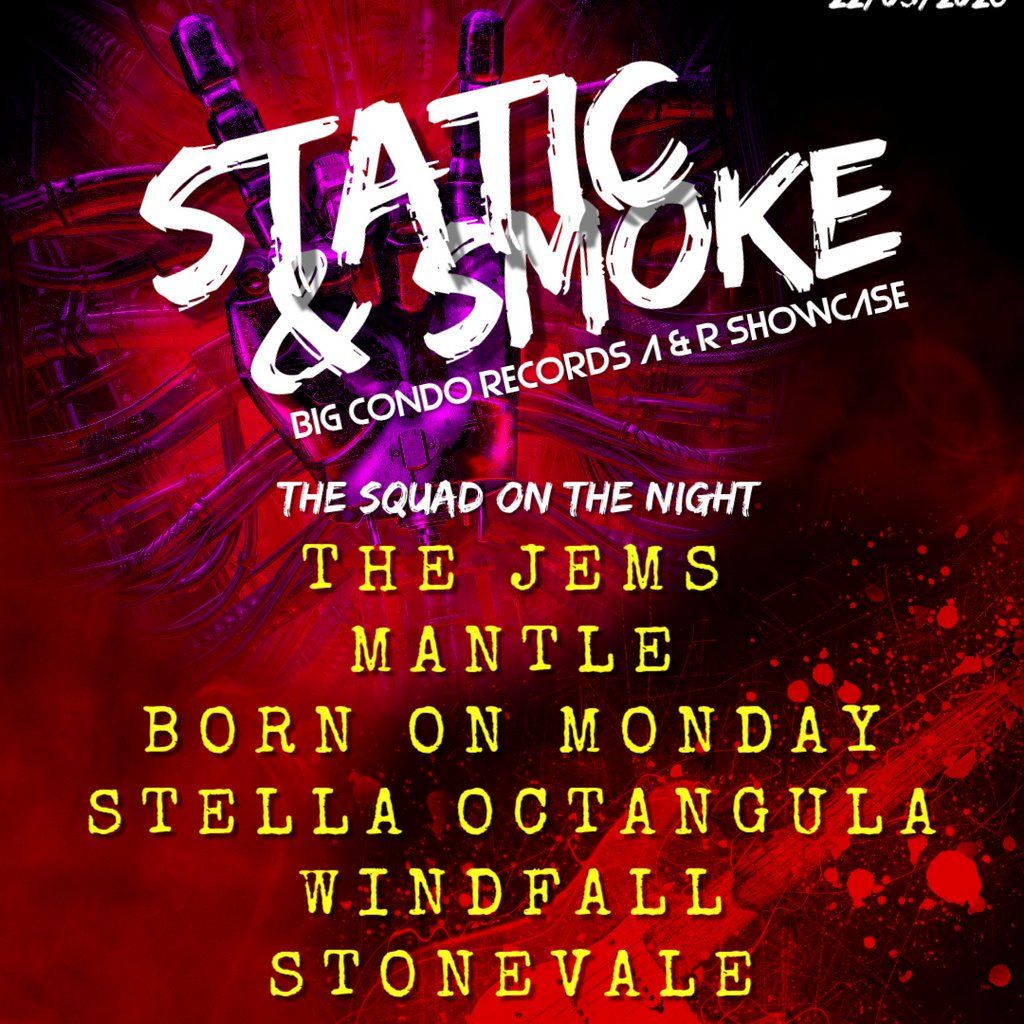 Big Condo Records Presents Static & Smoke with The Jems, Mantle, Born On Monday, Stella Octangula, Windfall, Stonevale....Music Genres : Rock, Indie, Alternative