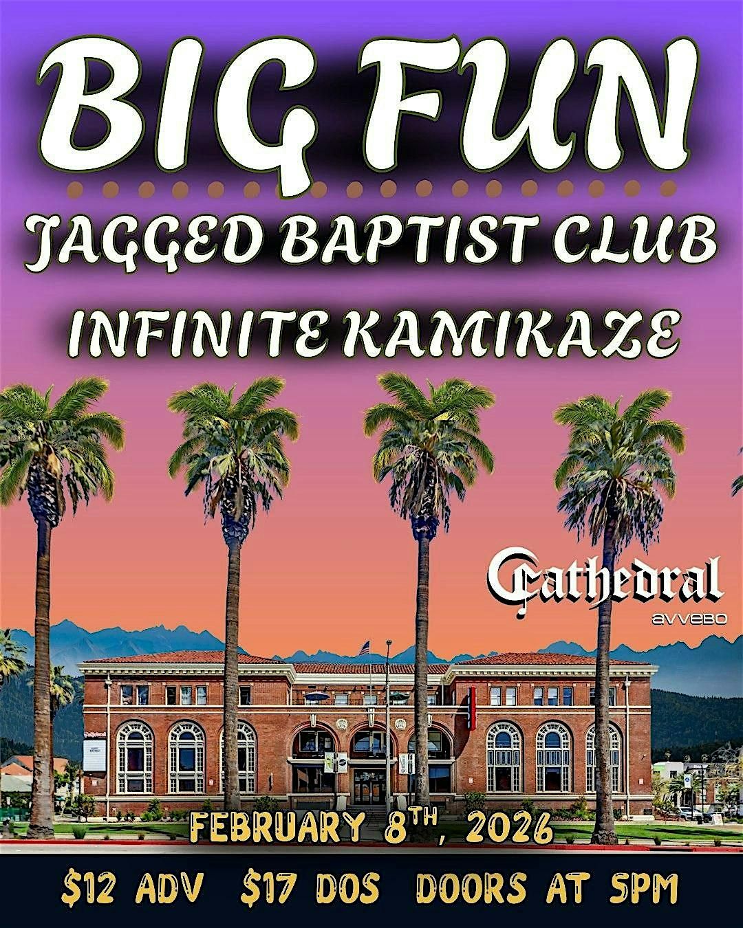 Joing us for a very special night with Big Fun, Jagged Baptist Club, and Infinite Kamikaze