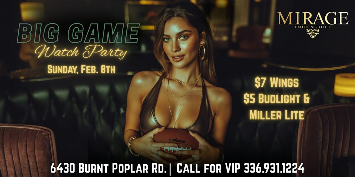 Join us at Mirage Exotic Nightlife for our Big Game Watch Party, where championship football, crave-worthy food specials, and elite nightlife energy collide. Catch every drive, touchdown, and game-changing moment live on big screens — then celebrate (or cope) with the hottest entertainment in the Triad.