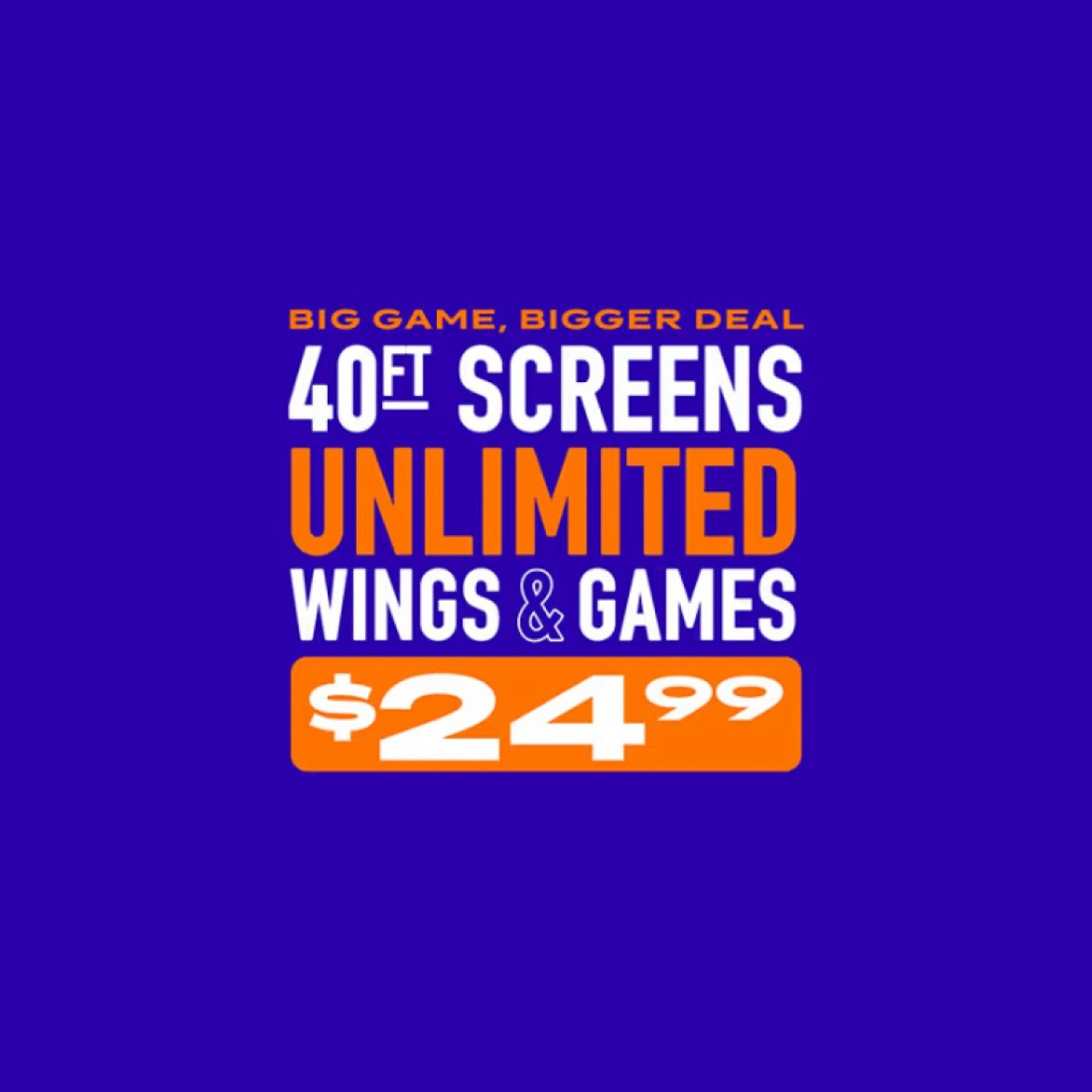 This isn’t just another watch party, it’s a full-on game day takeover. Head to Dave & Buster’s, claim your seat, and lock in for every down on our epic screens. Break through your hunger with unlimited wings throughout the game and keep the momentum alive with video game play while the action heats up. From opening kickoff to the final drive, expect big hits, big flavors, and big time vibes all game long. Get your tickets now!
