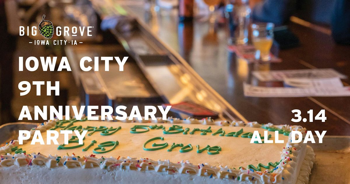 Saturday, March 14, we’re throwing a day-long bash to celebrate Big Grove Iowa City’s 9th Anniversary! From the day we opened our doors in 2017, this community has made the Yard feel like home, and we’re saying thanks with a full day of throwbacks and fresh pours.