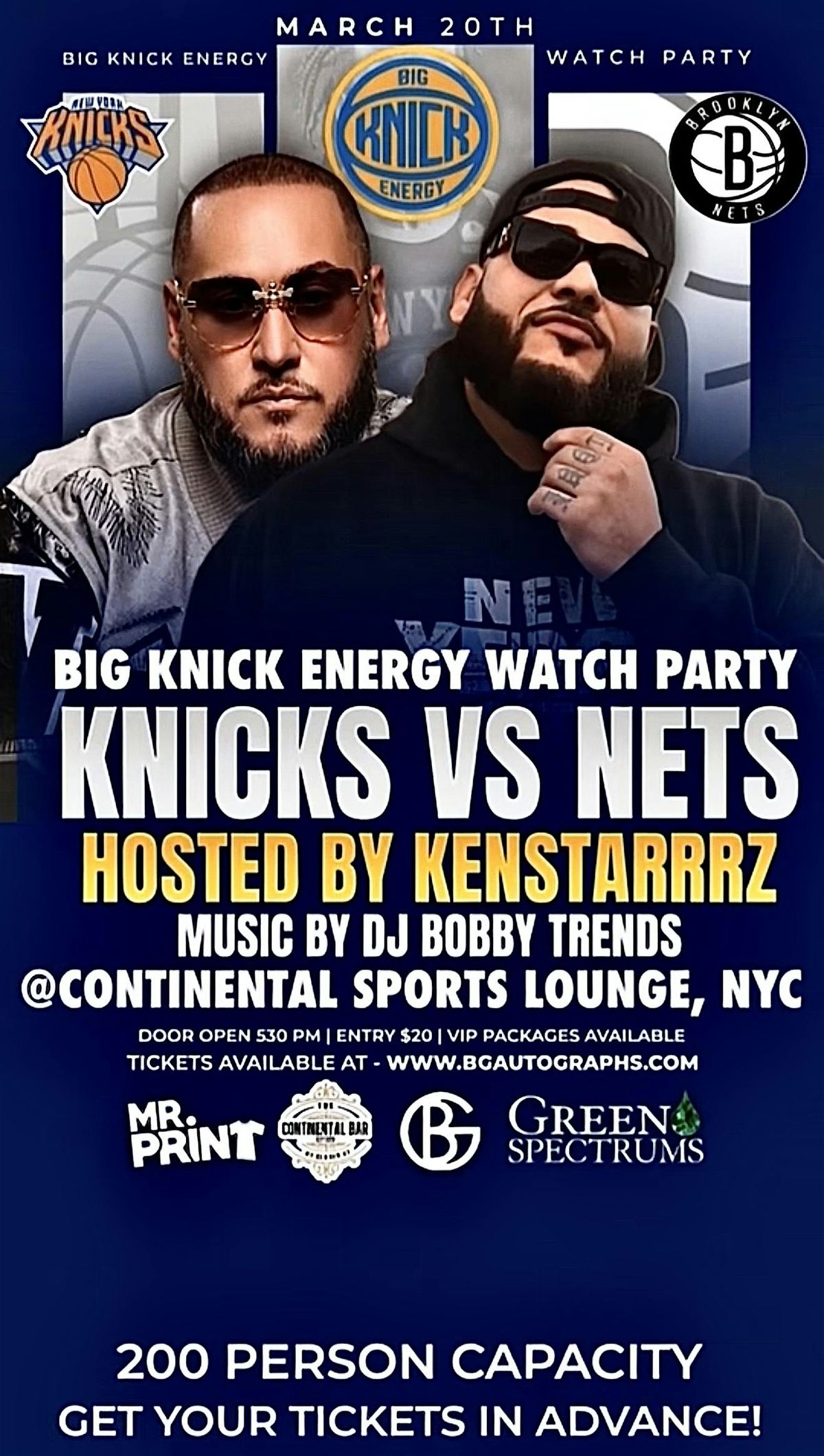 Big Knicks Energy tonight. Knicks vs Nets on the big screens. Pull up, grab a drink, and bring the energy. NYC bragging rights on the line.