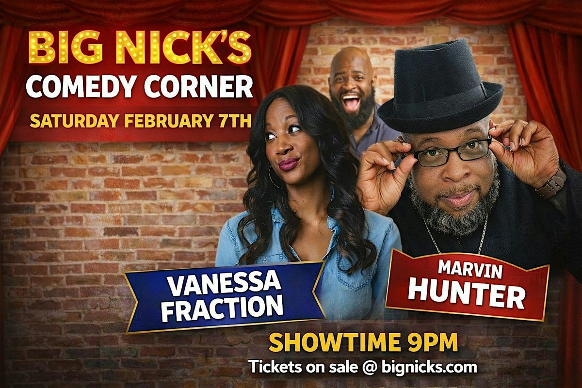 Big Nicks Comedy Corner. Saturday, February 7th. Featuring comedians Vanessa Fraction and Marvin Hunter and host Lav Luv. Showtime 9pm. T
