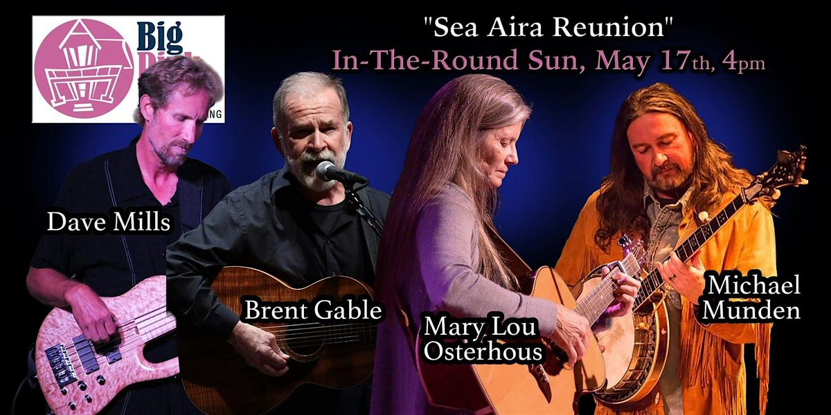 Big Pink Music is proud to present our next in-the-round show of 2026 with a reunion of the legendary local acoustic group "Sea Aira" on Sunday, May 17, 2026, at Hampton’s Victorian Station, the region’s only member-supported listening room. The band will take center stage -- literally -- for the next signature in-the-round. The format, made famous by Nashville's Bluebird Cafe and featured on the TV show, "Nashville," puts the artists in a circle ringed by the audience. It's an intimate, shared performance. Victorian Station, the grand building in Phoebus, is the perfect setting.
