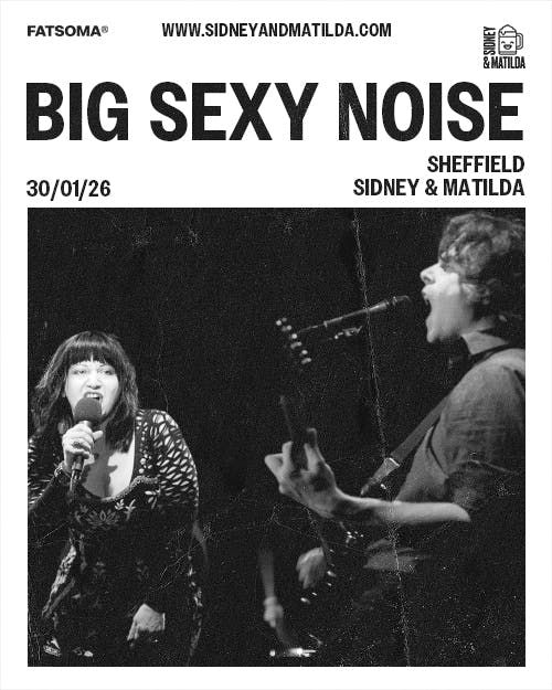 BIG SEXY NOISE is the volcanic union of LYDIA LUNCH, the iconic American indie provocateur, with thedark, swaggering energy of GALLON DRUNK — the cult London outfit known for their swampy,blues-soaked bursts of sound.