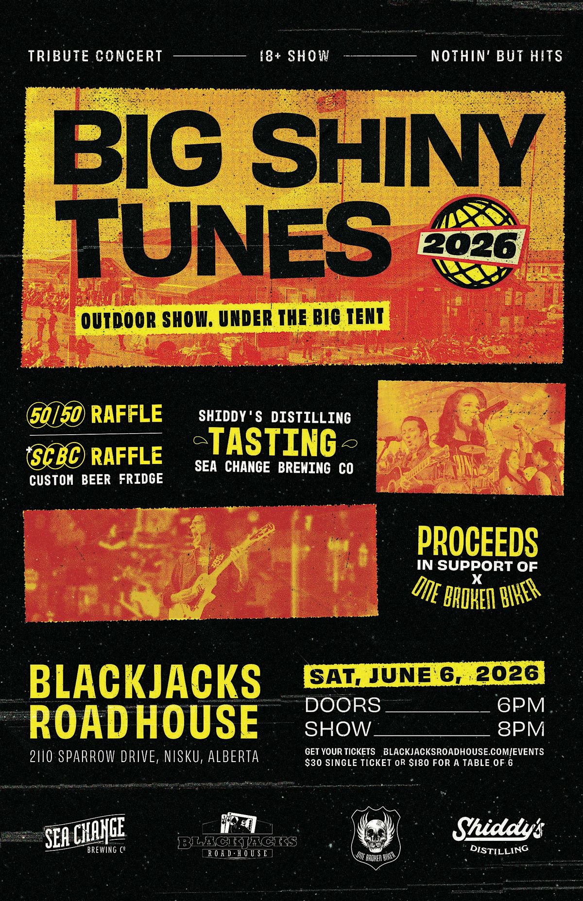 On Saturday, June 6, Blackjacks Roadhouse, Sea Change, and One Broken Biker are turning back the clock with the ultimate Big Shiny Tunes tribute show—a live celebration of the songs that defined the 90s and early 2000s. From alt-rock anthems to the unforgettable hits that dominated Canadian music video countdowns, this show is built for the generation that discovered music through MuchMusic and road-trip CD mixes.