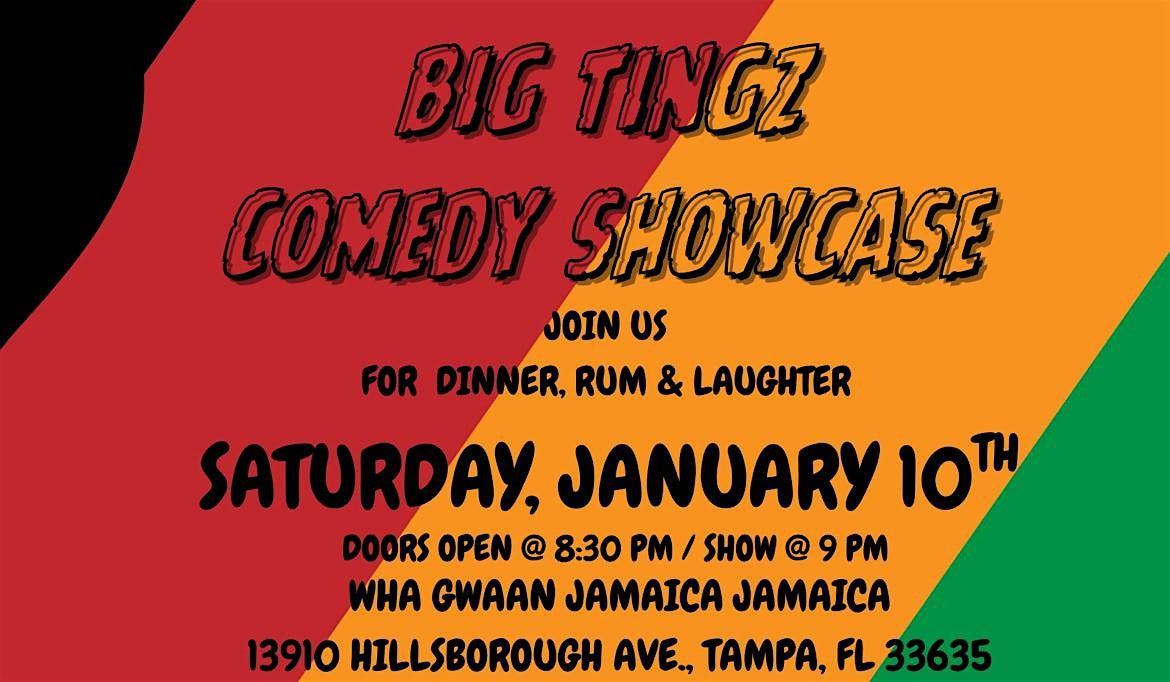 Wha Gwaan TAMPA, St. Pete, and surrounding areas?! Join us for our Monthly COMEDY night including 5-star Jamaican cuisine, rum and LAUGHTER via BIG TINGZ COMEDY SHOW presented at @whagwaanjamaica in Tampa, FL - Saturday, January 10, 2026.