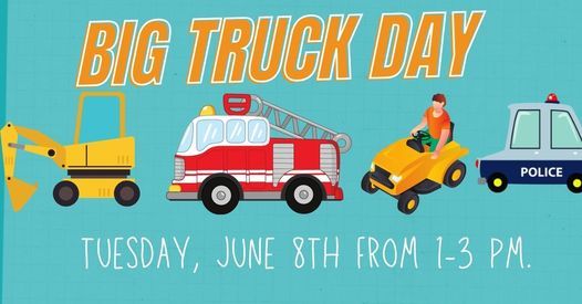 Come meet the men and women who drive the big rigs! This year's Big Truck Day will feature a backhoe, police & fire, lawnmowers of unusual size, and a flight simulator!The vehicles will be parked behind the library, but make sure you stop inside for some fun vehicle related activities.