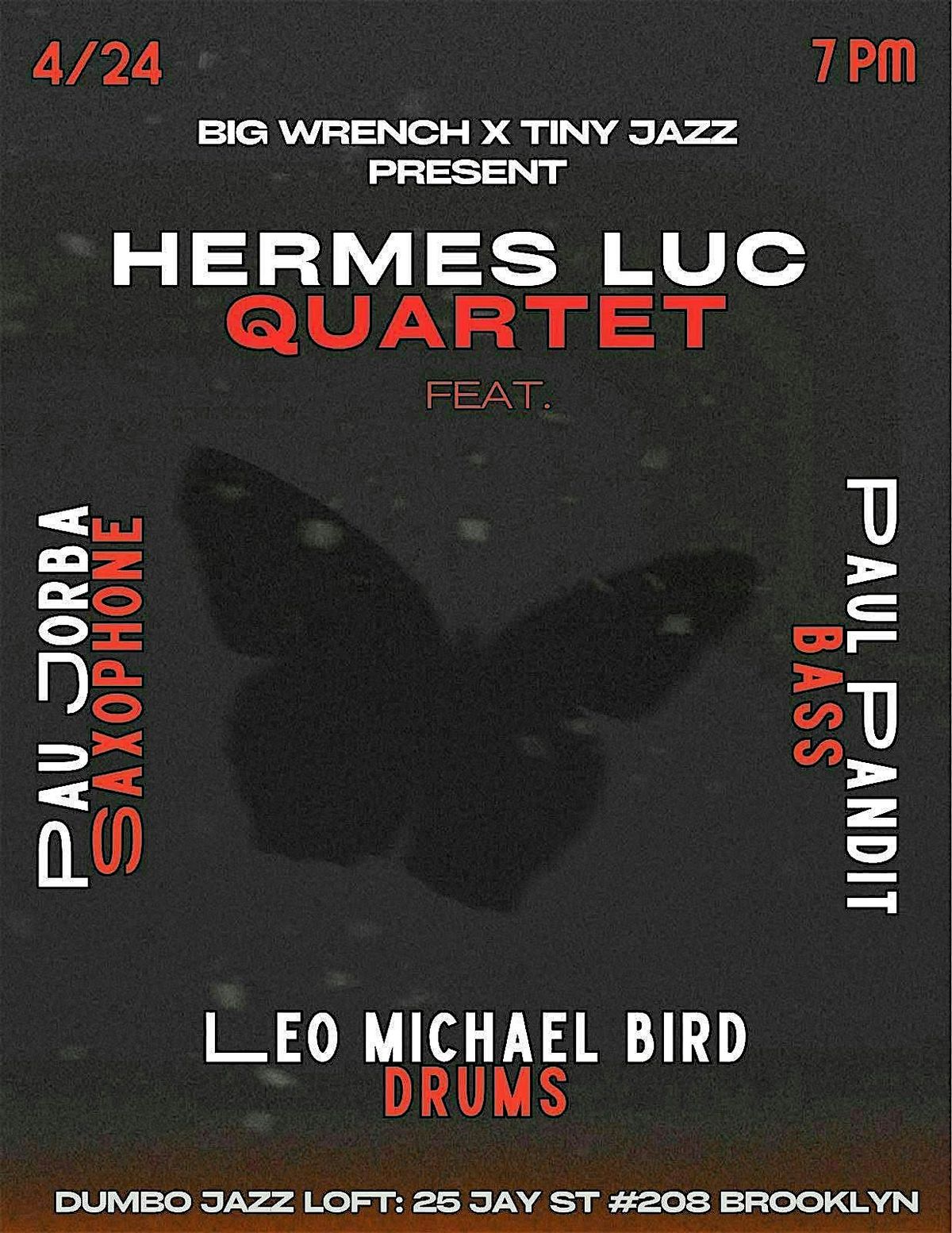 In collaboration with Brooklyn's Tiny Jazz, we are excited for Hermes Luc to grace our old Steinway grand, with Pau Jorba on tenor saxophone, Paul Pandit on bass and Leo Michael Bird on drums. Here's your chance to hear some of the new generation of jazz up-and-comers here in New York City, and you won't be disappointed! See you and hear them on Friday April 24th. :)