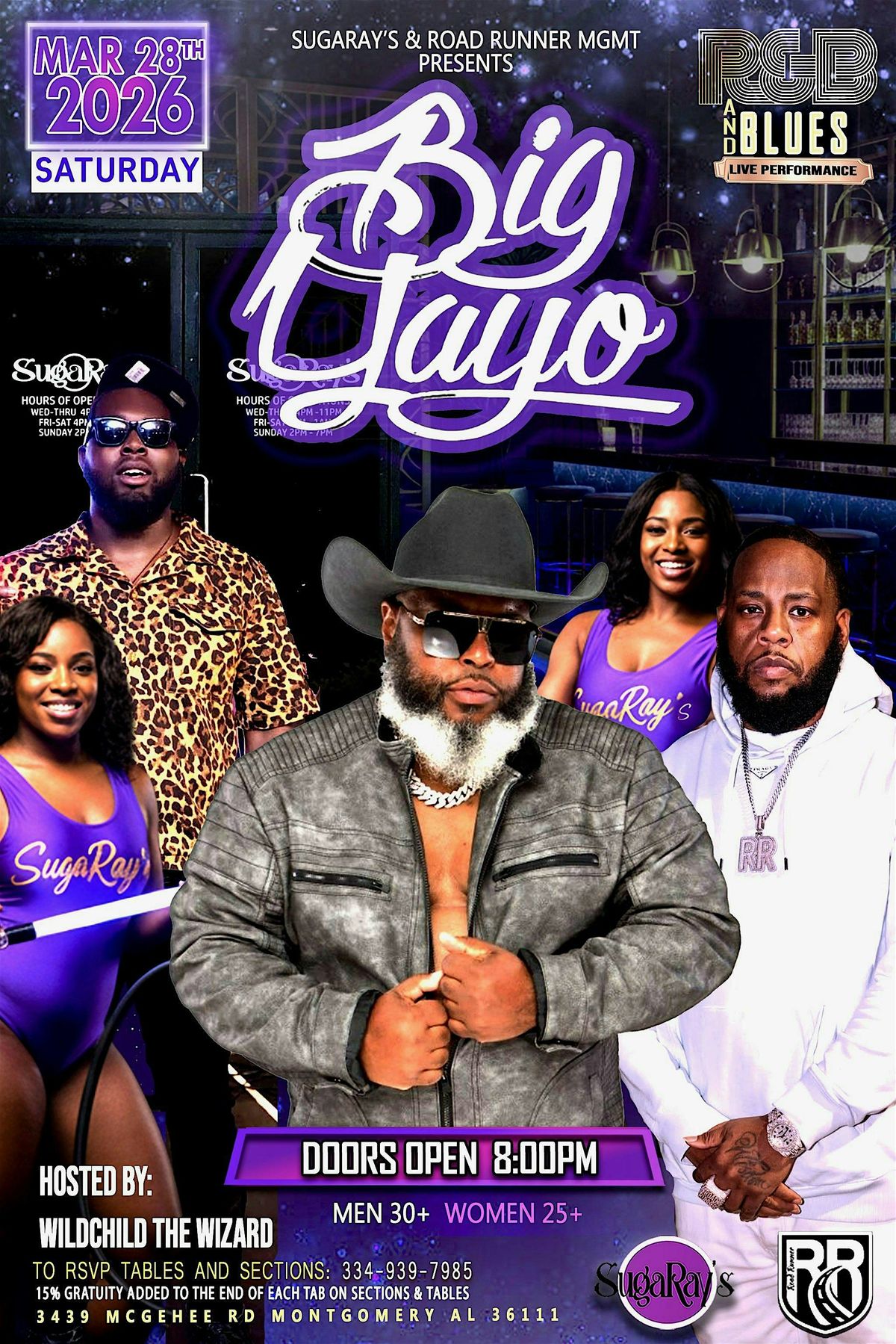 Get ready for an epic night with Big Yayo hitting the stage in person at the coolest spot in town, Sugarays! Bring your crew, vibe to the beats, and enjoy some real live energy. This is the kind of night you don't wanna miss—good music, great crowd, and unforgettable memories. See you there!