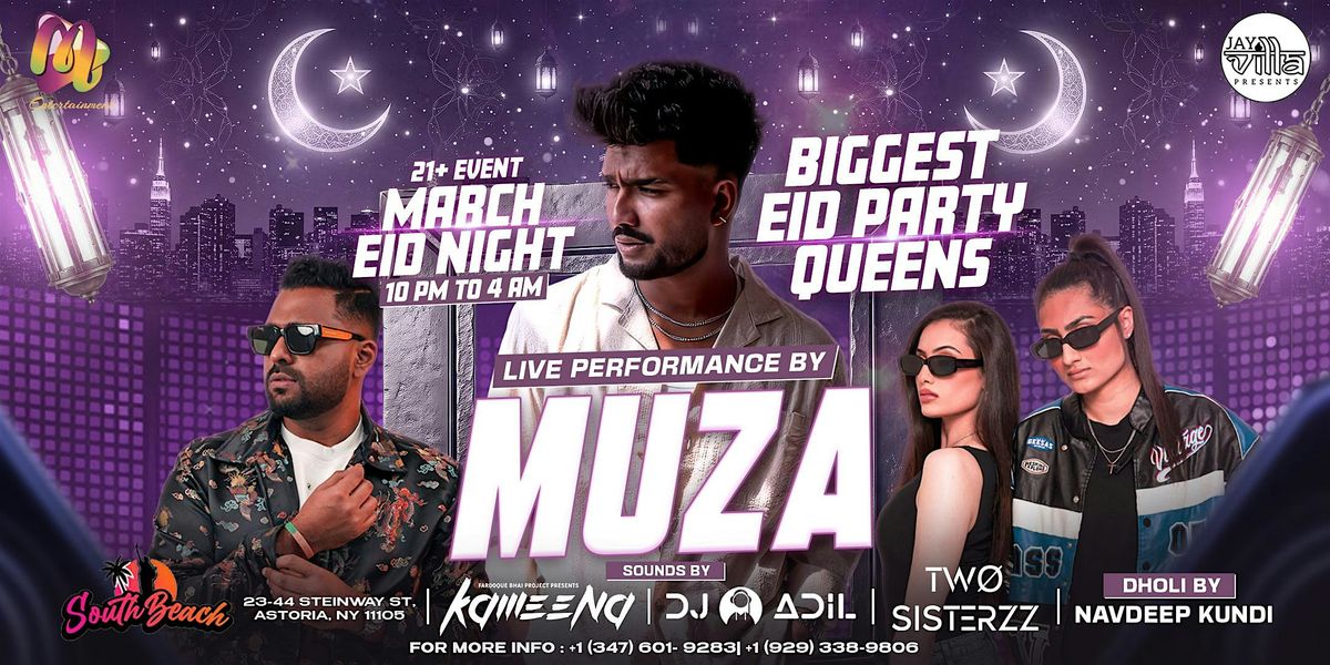 We're back for another epic night of Bollywood beats at south beach with Dj Two Sisterz, Dj Kamenna. Also live performance by MUZA .Agenda