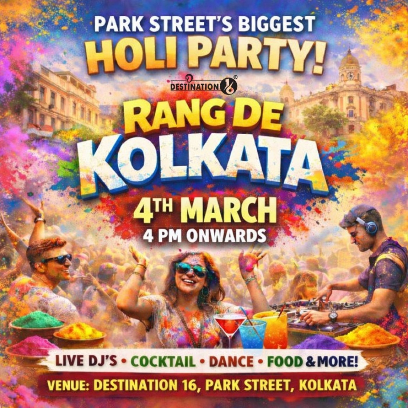 Get ready to drench yourself in colours, beats, and pure Holi madness as Rang De Kolkata takes over Park Street!